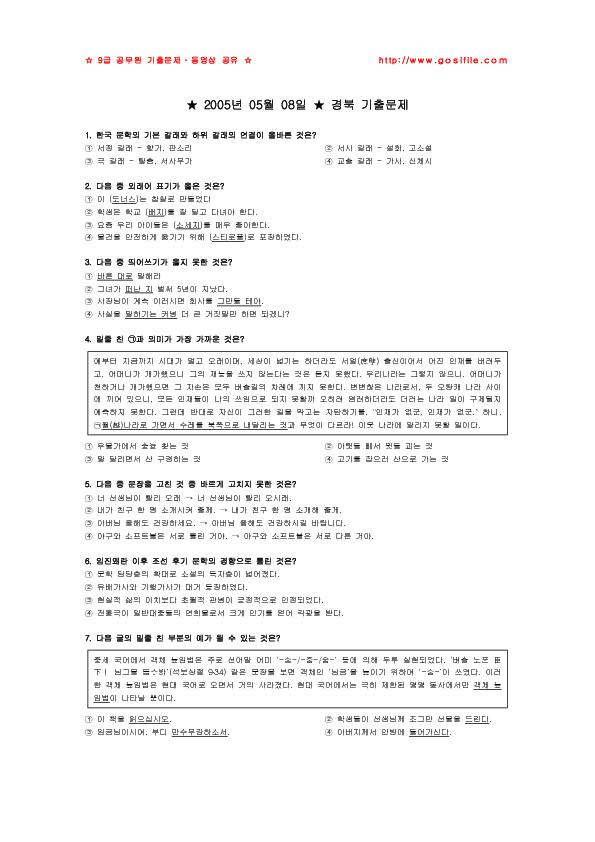 ÆÄÀϸí (9±Þ ±¹¾î) 2005³â 05¿ù 08ÀÏ °æºÏ ±âÃâ¹®Á¦.pdf °ü·Ã ºä¾î ´Ù¿î·Îµå