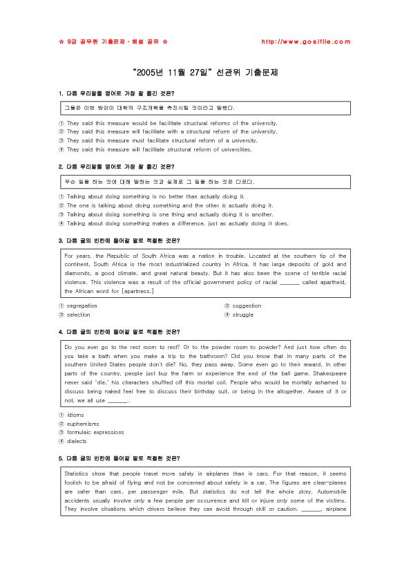 (9±Þ ¿µ¾î) 2005³â 11¿ù 27ÀÏ ¼±°üÀ§ ±âÃâ¹®Á¦ |