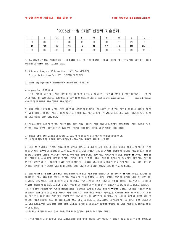 (9±Þ ¿µ¾î) 2005³â 11¿ù 27ÀÏ ¼±°üÀ§ ±âÃâ¹®Á¦ ÇØ¼³ |