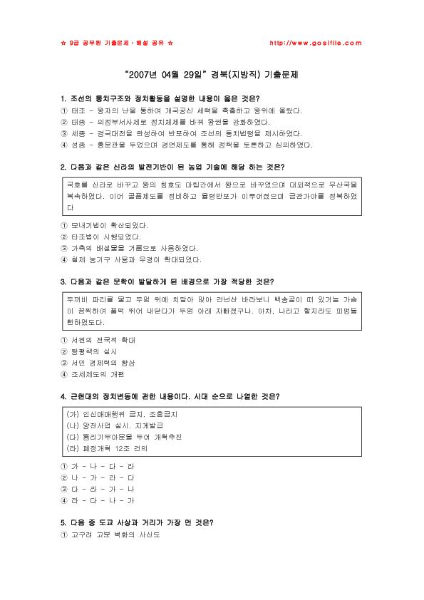 (9±Þ Çѱ¹»ç) 2007³â 04¿ù 29ÀÏ °æºÏ ±âÃâ¹®Á¦ (2) |