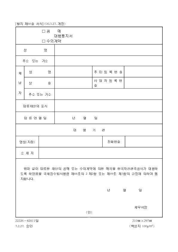 °ø¸Å(¼öÀǰè¾à)´ëÇàÅëÁö¼(00.3.27.°³Á¤(º°Áö Á¦66È£ |