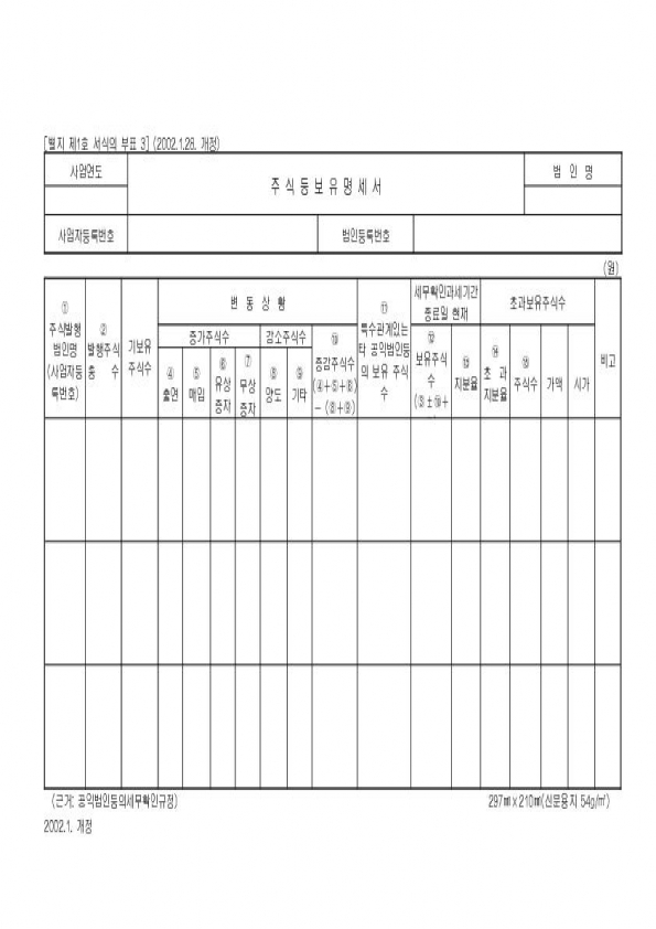 Á¦1È£ÀǺÎÇ¥3 ÁֽĵÀ¯¸í¼¼¼(2002.1.28. °³Á¤) |