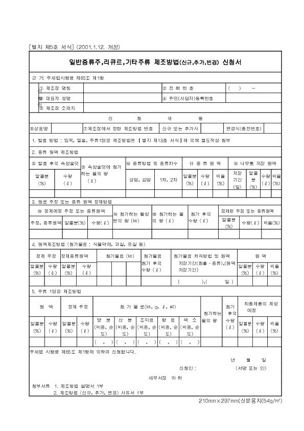 Á¦5È£ ¸®Å¥¸£, ±âŸÁÖ·ùÁ¦Á¶¹æ¹ý(½Å±Ô, Ãß°¡, º¯°æ)½Å°í¼(2001.1.12. °³Á¤) |