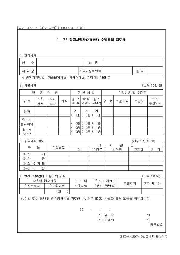 Á¦12-12(3)È£ Çпø»ç¾÷ÀÚ(±âŸÇпø)¼öÀԱݾװËÅäÇ¥(2000.12.6. ½Å¼³) |