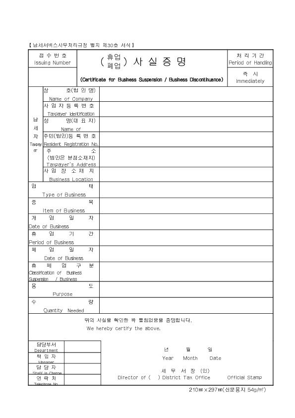 Á¦30È£ ÈÞ¾÷Æó¾÷»ç½ÇÁõ¸í(¿µ¹®) |