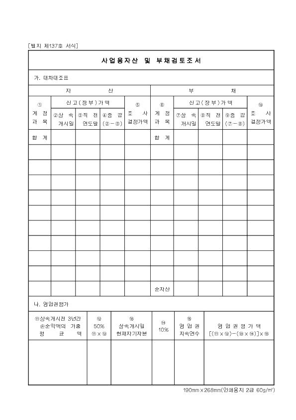 Á¦137È£ »ç¾÷¿ëÀÚ»ê ¹× ºÎä°ËÅäÁ¶¼ |
