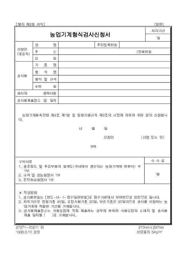 ³ó¾÷±â°è Çü½Ä °Ë»ç ½Åû¼ |