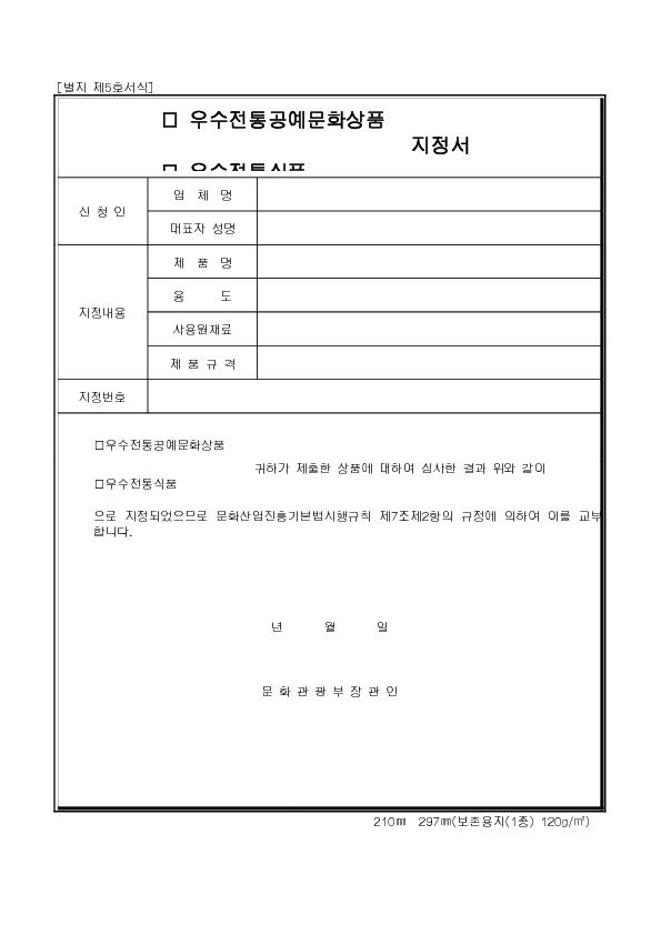 º°Áö Á¦5È£¿ì¼öÀüÅë°ø¿¹¹®È»óǰ, ¿ì¼öÀüÅë½ÄǰÁöÁ¤¼ |
