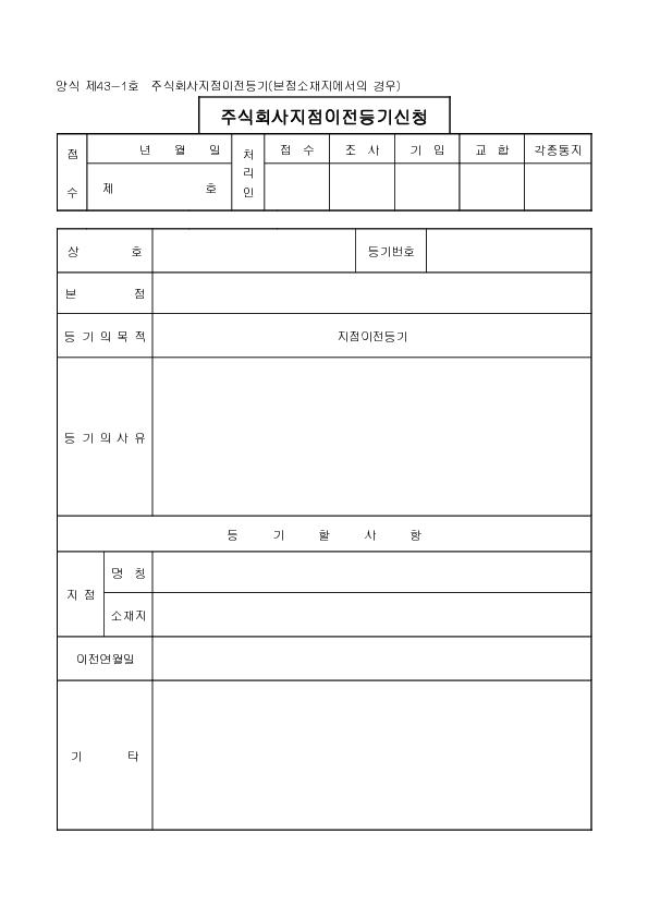 ÁÖ½Äȸ»ç ÁöÁ¡ÀÌÀüµî±â(º»Á¡¼ÒÀçÁö¿¡¼Àǰæ¿ì)(¾ç½Ä Á¦43-1È£) |