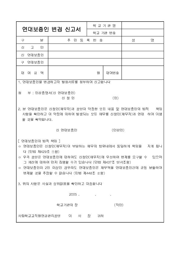 ¼Ò°³±Û ¿¬´ëº¸ÁõÀÎ º¯°æ½Å°í¼­