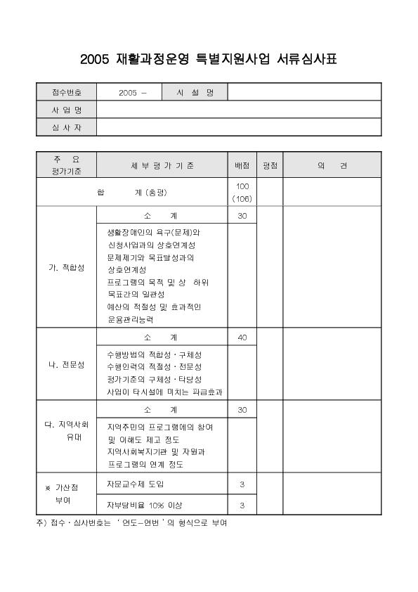 ÀçȰ°úÁ¤¿î¿µ Ưº°Áö¿ø»ç¾÷ ¼·ù½É»çÇ¥ |