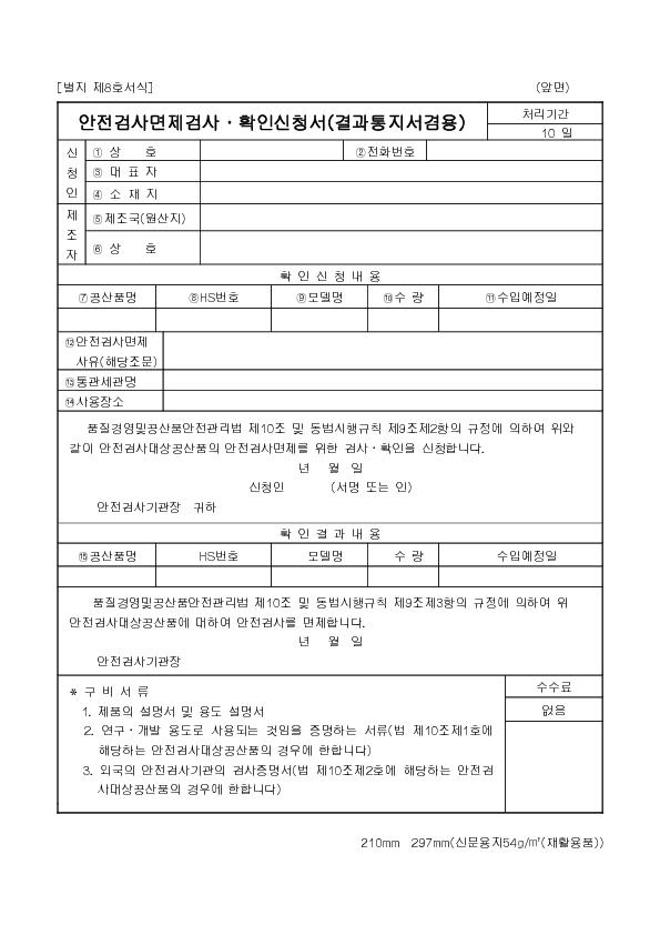 ¾ÈÀü°Ë»ç¸éÁ¦°Ë»çÈ®ÀνÅû¼(°á°úÅëÁö¼°â¿ë(º°Áö Á¦8È£¼½Ä) |