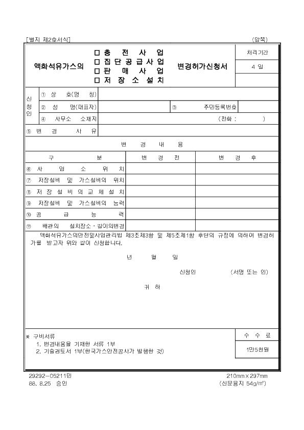 ¾×ȼ®À¯°¡½ºÀÇ(ÃæÀü»ç¾÷, Áý´Ü°ø±Þ»ç¾÷, ÆÇ¸Å»ç¾÷, ÀúÀå¼Ò¼³Ä¡)º¯°æÇã°¡½Åû¼ |
