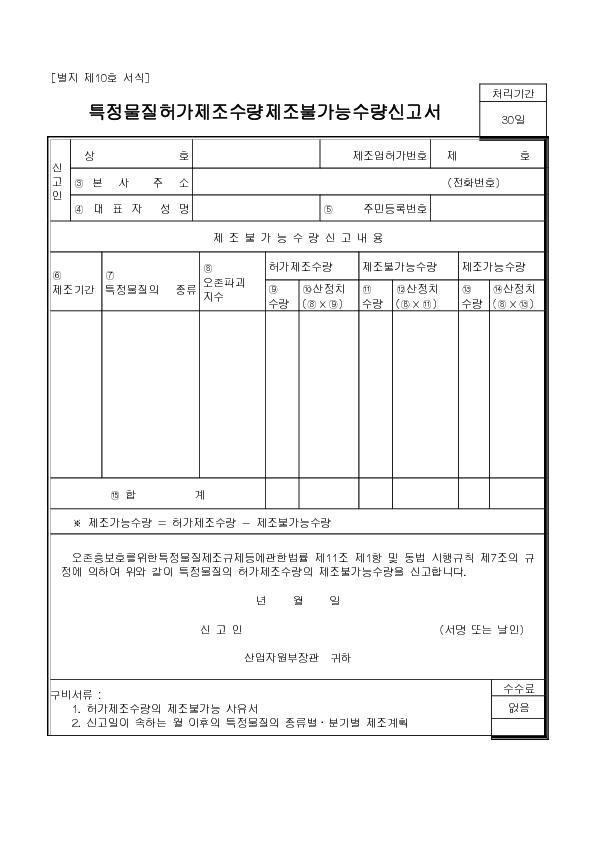 ƯÁ¤¹°Áú Çã°¡Á¦Á¶¼ö·®Á¦Á¶ ºÒ°¡´É ¼ö·® ½Å°í¼ |