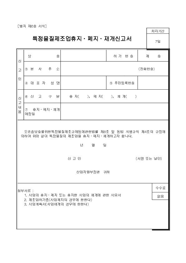 ƯÁ¤¹°ÁúÁ¦Á¶¾÷ÈÞÁö, ÆóÁö, Àç°³½Å°í¼ |