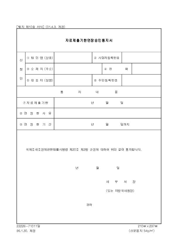 Á¦10È£ ÀÚ·áÁ¦Ãâ±âÇÑ¿¬Àå½ÂÀÎÅëÁö¼(2001.4.3. °³Á¤) |
