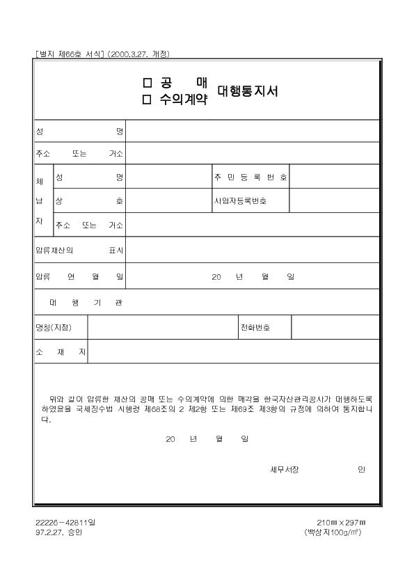 ±¹¼¼Â¡¼ö¹ý Á¦66È£ °ø¸Å, ¼öÀǰè¾à´ëÇàÅëÁö¼ |