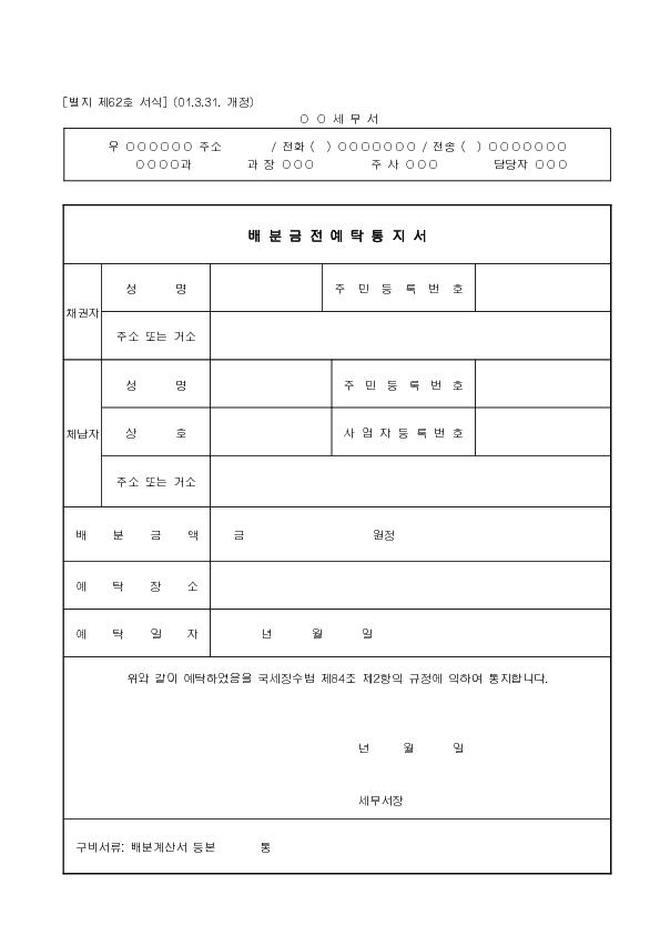 Á¦62È£ ¹èºÐ±ÝÀü¿¹Å¹ÅëÁö¼(2001.3.31. °³Á¤) |