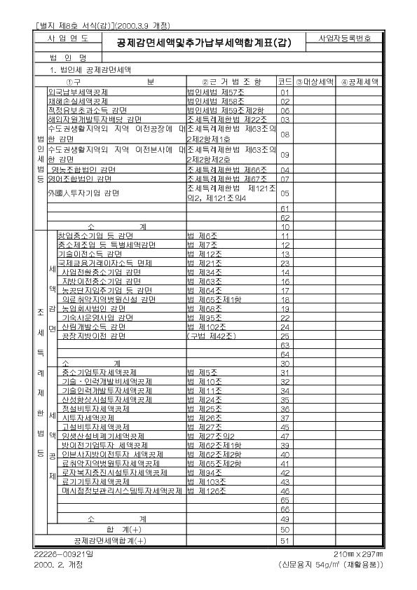 °øÁ¦°¨¸é¼¼¾× ¹× Ãß°¡³³ºÎ¼¼¾×ÇÕ°èÇ¥(°©) |