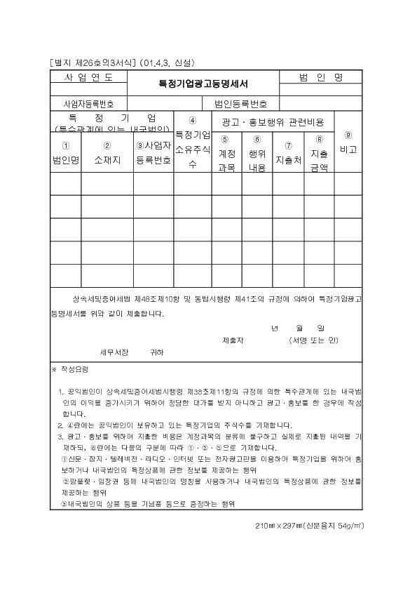 Á¦26È£ÀÇ3 ƯÁ¤±â¾÷±¤°íµî¸í¼¼¼(2001.4.3. ½Å¼³) |