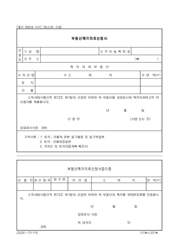 ¼Ò°³±Û ºÎµ¿»ê¸Å°¢ÀÇ·Ú½Åû¼­(Á¦85È£)(1996.3.30. ½Å¼³)