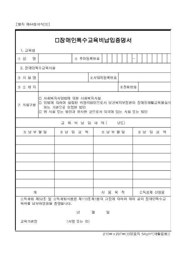 Àå¾ÖÀÎÆ¯¼ö±³À°ºñ³³ÀÔÁõ¸í¼(º°Áö Á¦44È£ ¼½Ä(3)) |