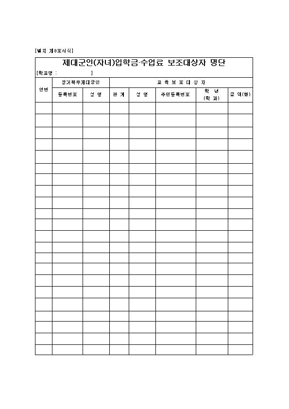Á¦´ë±ºÀÎ(ÀÚ³à)ÀÔÇÐ±Ý ¼ö¾÷·á º¸Á¶´ë»óÀÚ ¸í´Ü ¾ç½ÄÀÔ´Ï´Ù. |