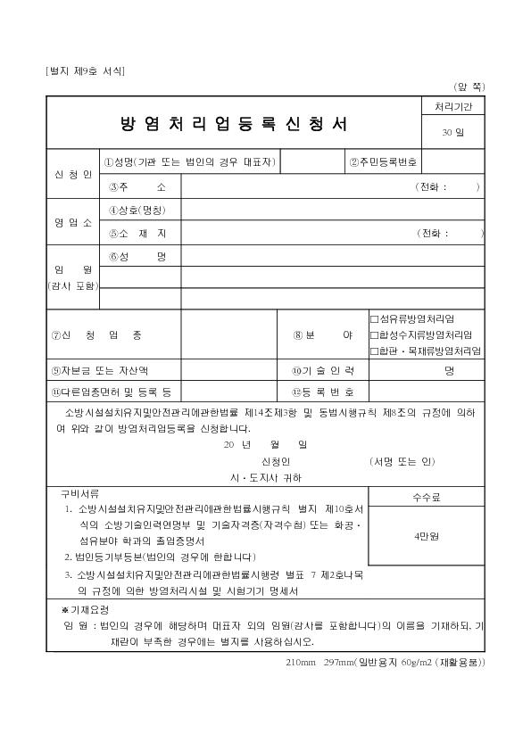 ¹æ¿°Ã³¸®¾÷µî·Ï½Åû¼(º°Áö Á¦9È£ ¼½Ä) |
