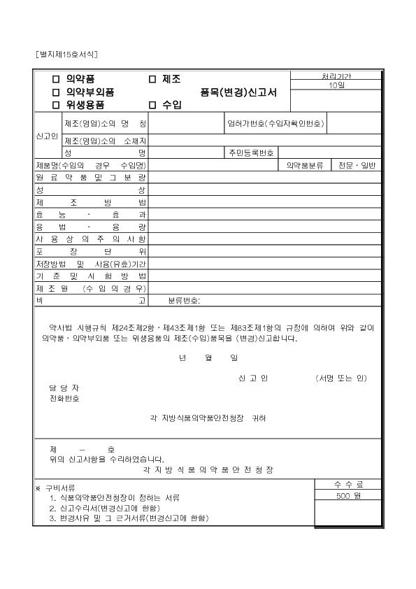(ÀǾàǰ, ÀǾàºÎ¿Üǰ, À§»ý¿ëǰ, Á¦Á¶, ¼öÀÔǰ¸ñ(º¯°æ)½Å°í¼ |