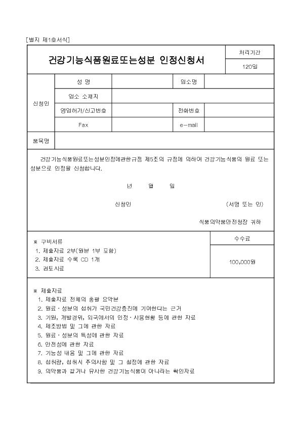 °Ç°±â´É½Äǰ¿ø·á¶Ç´Â ¼ººÐ ÀÎÁ¤½Åû¼(º°Áö Á¦1È£¼½Ä) |