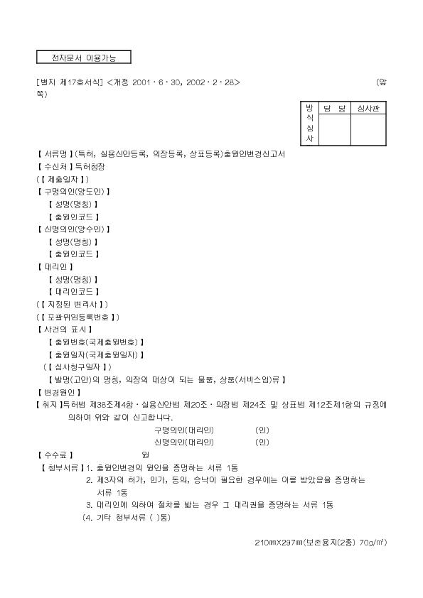 ¼Ò°³±Û (ƯÇã, ½Ç¿ë½Å¾Èµî·Ï, ÀÇÀåµî·Ï, »óÇ¥µî·Ï)Ãâ¿øÀκ¯°æ½Å°í¼­(º°Áö Á¦17È£)