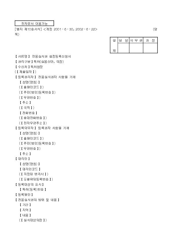 Àü¿ë½Ç½Ã±Ç ¼³Á¤µî·Ï½Åû¼(º°Áö Á¦10È£¼½Ä) |
