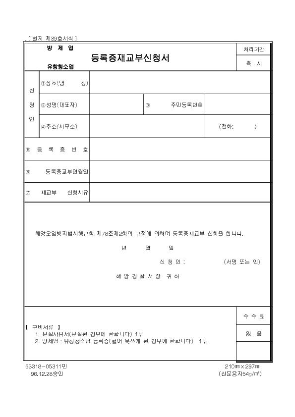 ¹æÁ¦¾÷, À¯Ã¢Ã»¼Ò¾÷µî·ÏÁõÀç±³ºÎ½Åû¼ |
