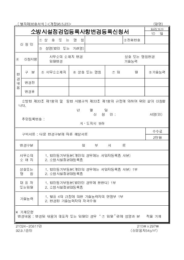 ¼Ò¹æ½Ã¼³ Á¡°Ë¾÷ µî·Ï»çÇ× º¯°æ µî·Ï½Åû¼ |