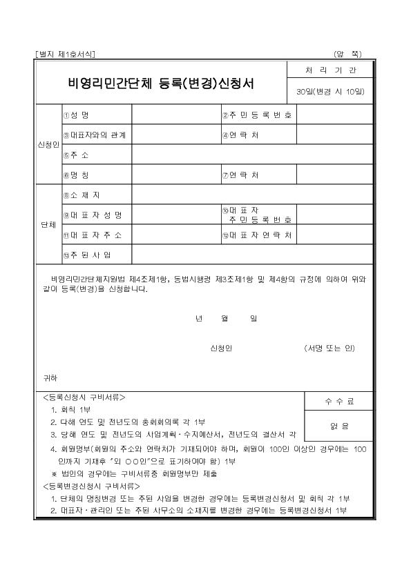 ºñ¿µ¸®¹Î°£ ´Üüµî·Ï(º¯°æ) ½Åû¼ |