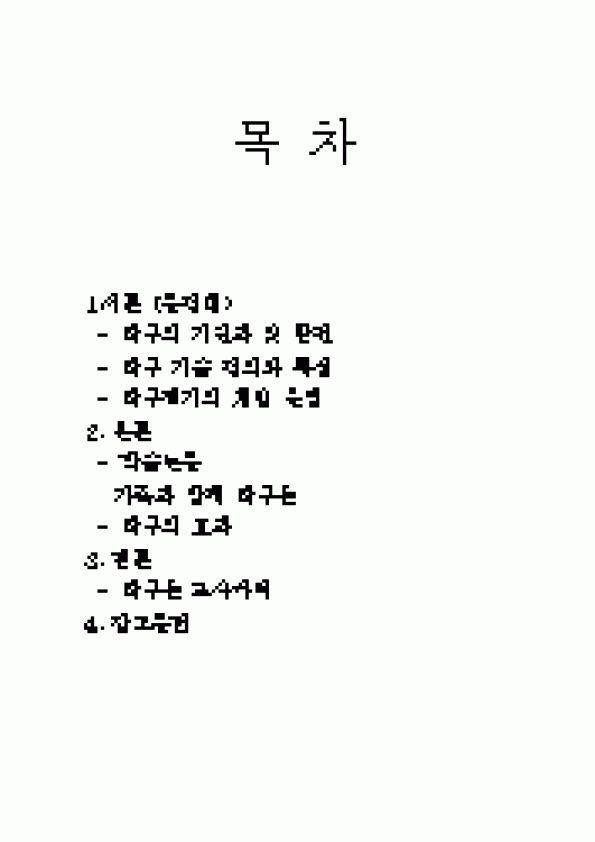 1.¼·Ð (¹®Á¤´ë) - ʱ¸ÀÇ ±â¿ø°ú ¹× ¹ßÀü - ʱ¸ ±â¼ú Á¤ÀÇ¿Í Æ¯¼º - ʱ¸°æ±âÀÇ °ÔÀÓ ¿î¿µ 2. º»·Ð - Çмú³í¹® °¡Á·°ú ÇÔ²² ʱ¸¸¦ - ʱ¸ÀÇ È¿°ú 3. °á·Ð - ʱ¸¸¦ Á¶»çÇϸç 4. Âü°í¹®Çå