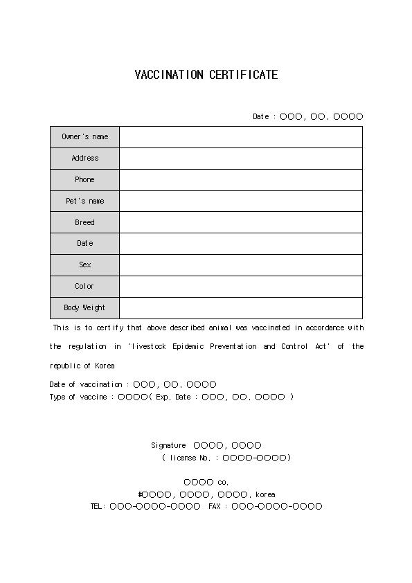 ¿µ¹®VACCINATIONCERTIFICATE¾Ö¿Ïµ¿¹°¿¹¹æÁ¢Á¾Áõ¸í¼ |