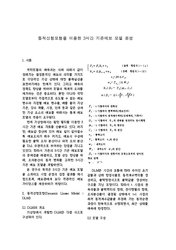 µ¿Àû¼±Çü¸ðÇüÀ»ÀÌ¿ëÇÑ3½Ã°£±â¿Â¿¹º¸¸ðµ¨¿î¿µ |