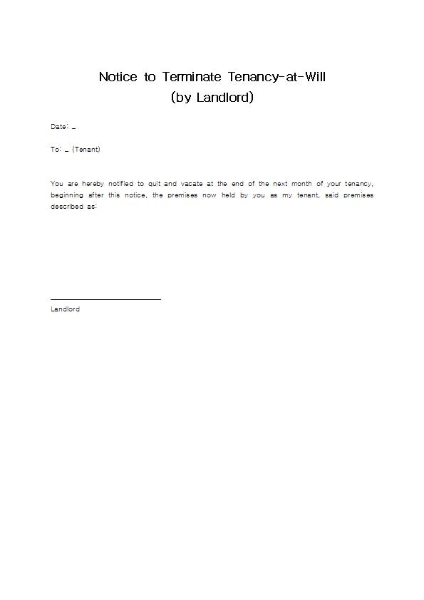 ¿µ¹®ÀÓ´ë±â°£Á¾·á°øÁö¹®NoticetoTerminateTenancyatWillbyLandlord |