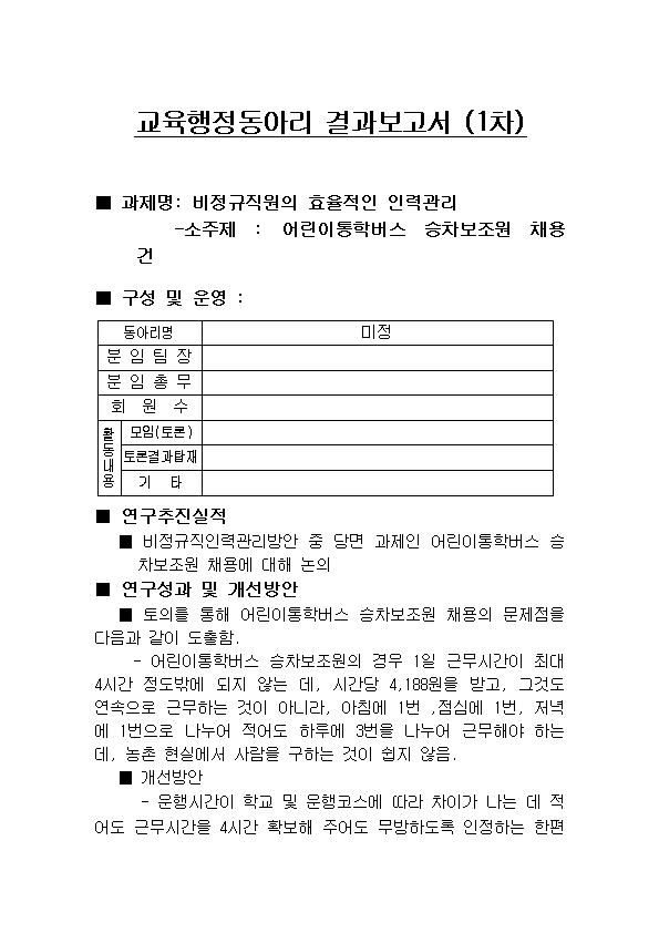 ±³À°ÇàÁ¤µ¿¾Æ¸® °á°úº¸°í¼ |
