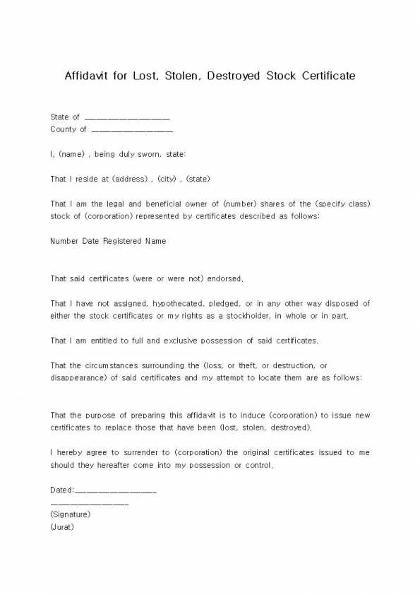 ¿µ¹®ÁÖ±Çñ»ÏçÀǼսǵµ³ÆÄ±â¿¡´ëÇÑÁø¼ú¼AffidavitforLostStolenDestroyedStockCertificate |