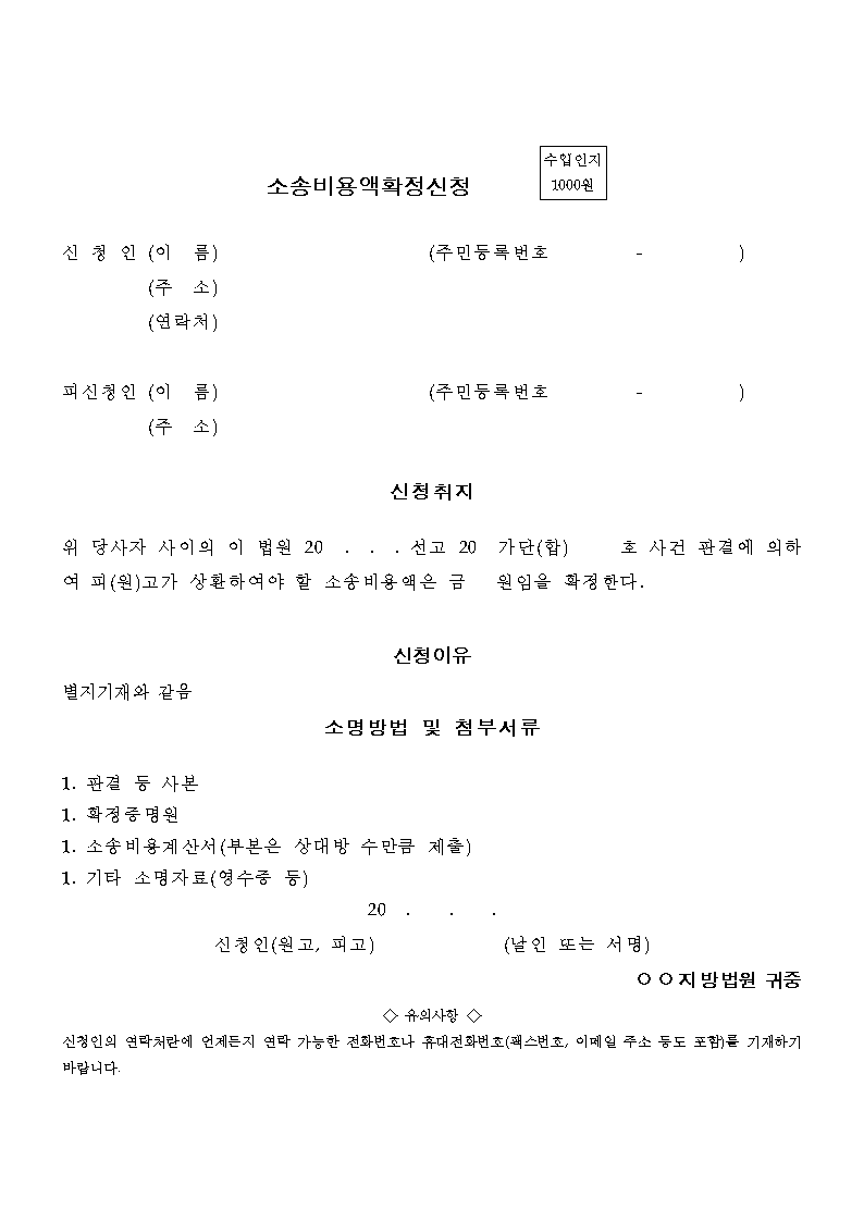 [¹Î»ç-´ë¹ý¿ø]¼Ò¼Ûºñ¿ë¾×È®Á¤½Åû¼ |