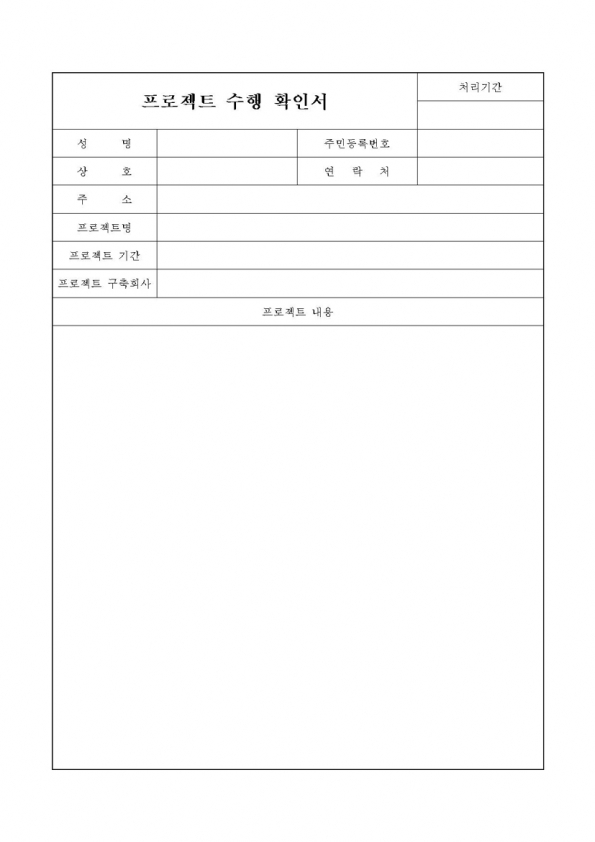 ÇÁ·ÎÁ§Æ®ÀÇ ¼öÇàÀ» È®ÀÎÇÏ´Â ¾ç½ÄÀ¸·Î¼ ÇØ´çÇ׸ñ¿¡ ¸Â°Ô ÀÛ¼ºÇÏ½Ã¸é µË´Ï´Ù |