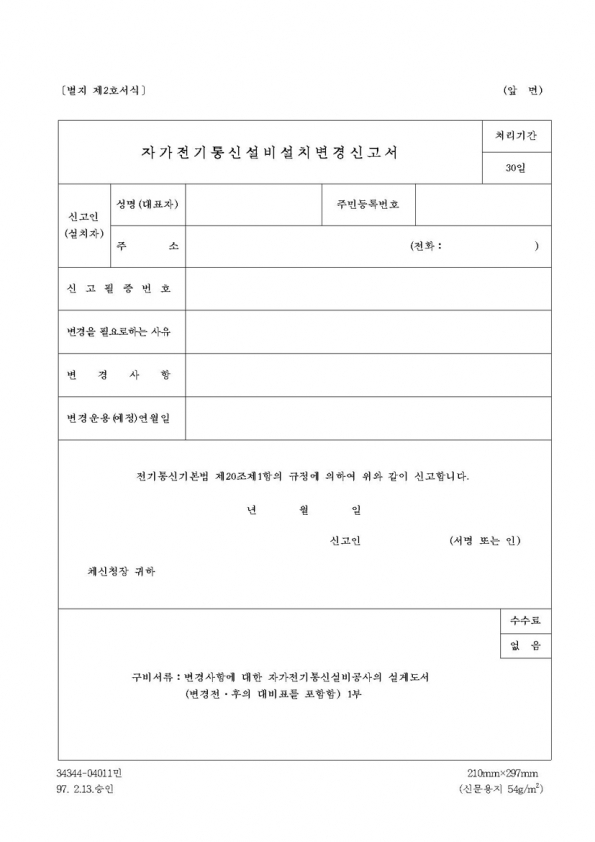 Àü±âÅë½Å±âº»¹ý Á¦20Á¶Á¦1Ç×ÀÇ ±ÔÁ¤¿¡ ÀÇÇÏ¿© º¯°æ½Å°í¸¦ ÇÒ¶§ »ç¿ëÇÏ´Â ¾ç½ÄÀÔ´Ï´Ù. |