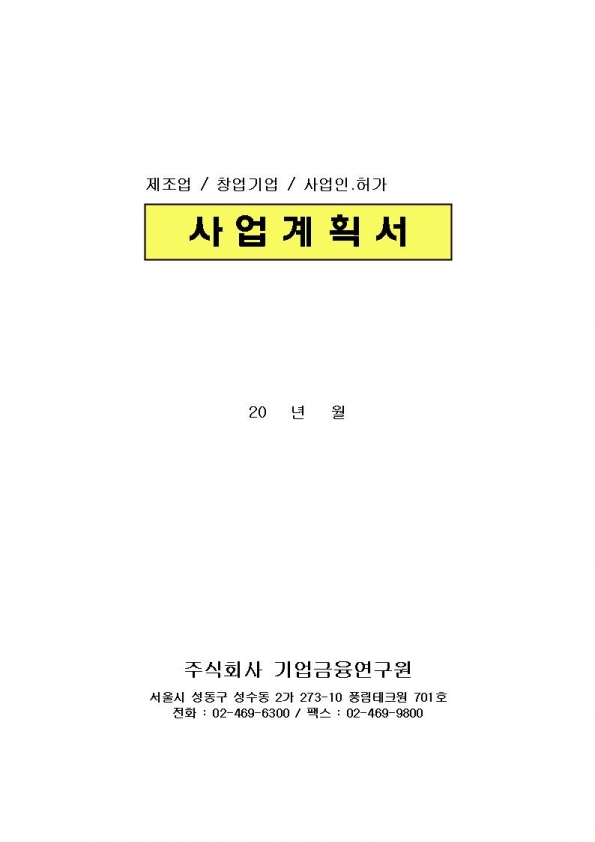 Ç¥ÁØ»ç¾÷°èȹ¼¾ç½ÄÁ¦Á¶¾÷â¾÷¿¹Á¤±â¾÷»ç¾÷ÀÎÇã°¡ |