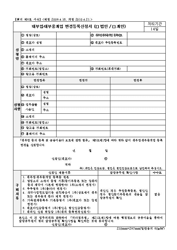 ´ëºÎ¾÷¡¤´ëºÎÁß°³¾÷ º¯°æµî·Ï¼ |