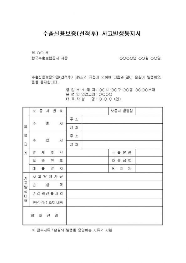 ¼öÃâ½Å¿ëº¸Áõ¼±ÀûÈÄ»ç°í¹ß»ýÅëÁö¼ |