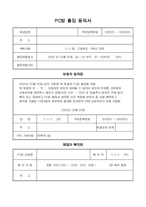 pc¹æÃâÀÔµ¿ÀǼÀÔ´Ï´Ù. ÇöÀç PC¹æ ÃâÀÔÀÇ ³ªÀÌÁ¦ÇÑÀº ¾øÁö¸¸ ÄÄÇ»ÅÍ °ÔÀÓÀ» ¿À·¡ ÇÏÁö ¾Êµµ·Ï Çϱâ À§ÇØ ºÎ¸ðÀÇ µ¿ÀǸ¦ ¹Þ¾Æ PC¹æ¿¡ °¥ ¼ö ÀÖµµ·Ï ÇÏ´Â ¼½ÄÀÔ´Ï´Ù. |
