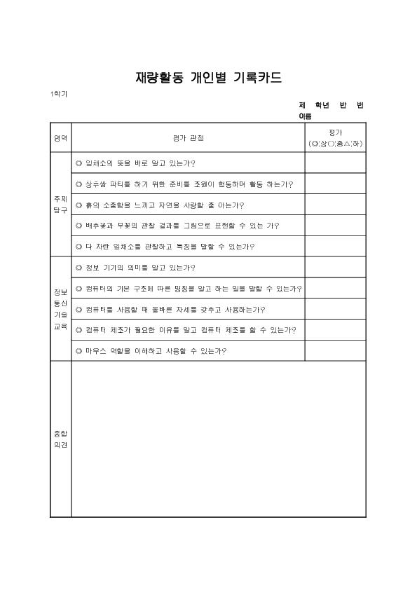 À緮Ȱµ¿°³Àκ°¼öÇàÆò°¡Ä«µå¾ç½ÄÃʵî1Çгâ2 |