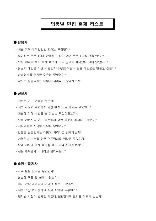 ¾÷Á¾º° ¸éÁ¢ ÃâÁ¦ ¸®½ºÆ® |
